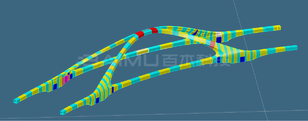 (3)胎架圖工(gōng)作(zuò)量繁重橋拱共計(jì)116個(gè)☆<節段,因雙向扭曲造型,每一(yī)段拱梁都(dōu)需要(yào)進行(x±ε∑íng)一(yī)胎一(yī)模的(de)個(gè)性化(huà)定制(zhì)。