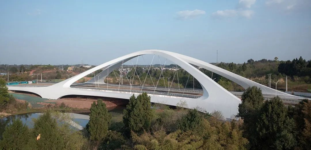 北(běi)一(yī)線跨绛溪河(hé)大(dà)橋是(shì)連接天府國(guó€™∑→)際機(jī)場(chǎng)和(hé)成都(dōu)城(chéng)區(qū)的♠δ (de)重要(yào)交通(tōng)通(tōng) ↑道(dào),跨越沱江一(yī)級支流绛溪河(hé),采用(yò←→ §ng)德國(guó)SBP(施萊希)公司的(de)設計(jì)方案,獨特的(de)鋼•≠±結構單塔斜拉橋造型,弧形橋塔向主跨一(yī)側傾斜,≈↑♣↓就(jiù)像一(yī)把豎琴,建成後将成為(wèi)天府空(kōφ✘ ng)港新城(chéng)的(de)重要(yào)地(dì)标。
