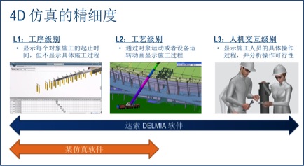 盡管很(hěn)多(duō)軟件(jiàn)都(dōu)☆≤可(kě)以進行(xíng)一(yī)定程度上(shàng)的(de)4D仿真模♣£拟,但(dàn)真正能(néng)進行(xíng)精細化(huà)仿真的(de)軟件(jiàn)并↓γ不(bù)多(duō)。我們可(kě)以把施工(gōng)仿真分(fēn)為(wèi)不(↕®bù)同的(de)精細度,而企業(yè)可(kě)以根據項目中的(de)具體(tǐ)情況提出不(® bù)同的(de)精細度仿真需求:簡單的(de)施工(gōng)過程可(kě)能(né>↕≥•ng)隻需要(yào)做(zuò)到(dào)工(gō ₹ng)序級别,而複雜(zá)的(de)施工(gōng)過程可(kě)能(néngΩ β€)需要(yào)工(gōng)藝級别甚至人(rén)機(jī)交互級别的(de¥™)仿真。