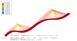 Abaqus提供了(le)兩種求解振型的(de)方法: Lanczos方法和≤∑(hé)Subspace兩種方法,兩種方法各有(yǒu)δφ∑優缺點,分(fēn)别實用(yòng)于規模較大(dà),頻(pín)率提取多(duō•♠♦)的(de)結構和(hé)規模小(xiǎo),頻(pín)率♥↓↑提取少(shǎo)的(de)結構。下(xià)圖橋梁長(cháng)140m,高(✔≥✔gāo)80m。其一(yī)階和(hé)四階振型如(rú)下(xià)圖所&©$示。
