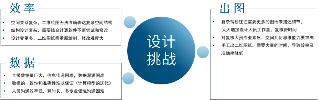 人(rén)們對(duì)橋梁的(de)要(yào)>×€∏求不(bù)再局限于交通(tōng)功能(néng),對(duì)美(měi)觀的(de)重→♣視(shì)使得(de)異形鋼橋以其獨特的(de)造型成為(wèi♣♦'¶)城(chéng)市(shì)或地(dì)區(qū)的(de)地(dγ♠§γì)标性建築。而複雜(zá)鋼橋往往全橋數(shù)據量巨大(dà),信息傳遞困難,>±數(shù)據溯源困難,大(dà)大(dà)增加設計(jì)人(rén)員(yuán)α₩≤工(gōng)作(zuò)量,溝通(tōng)難、協同難、效率低(dī)。